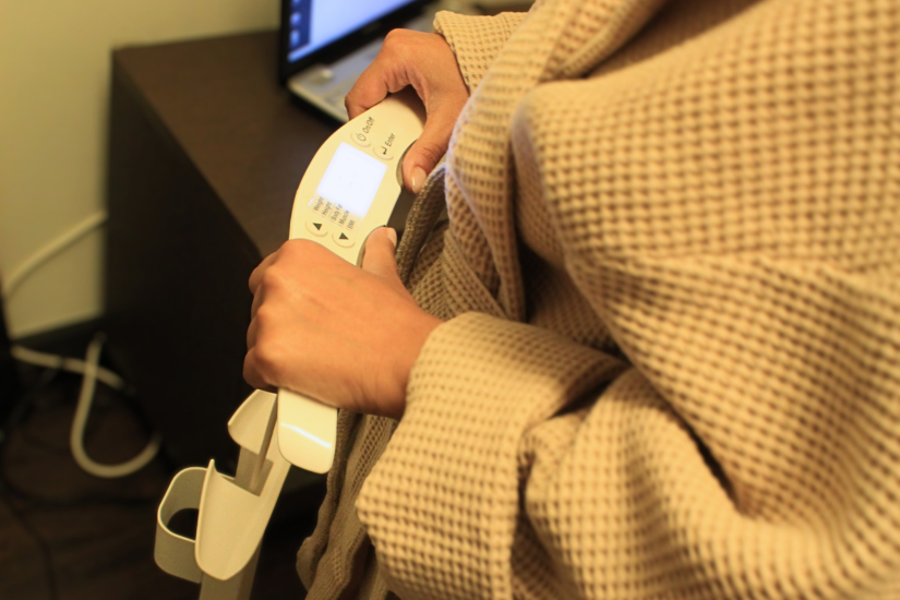 Uma análise detalhada da composição corporal (frequentemente por bioimpedância). Serve para medir a percentagem de gordura, massa muscular e retenção de líquidos, permitindo criar um plano de tratamentos à tua medida.